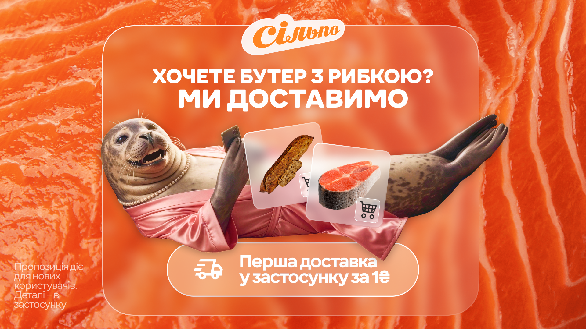 For this campaign, we connected Silpo's delivery service with that familiar feeling — when you just can't be bothered to go grocery shopping and all you want is to curl up like a little seal. We also developed a campaign identity that brought all messages together under one cohesive visual style.